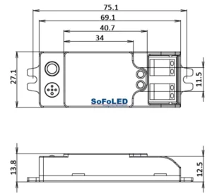 Czujniki serii HNS111xxx-SFL mają bardzo małe gabaryty co oczywiście znakomicie ułatwia wbudowanie czujnika w oprawę. Wysokość obudowy 13,8mm powoduje, że nie „rzuca” on cienia na rozpraszacz.